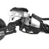 This motorcycle-ATV hybrid was custom made for THE DARK KNIGHT, fitted for ultimate protection with grappling hooks, cannons and machine guns. Equipped with a rotating saddle, the BAT-POD can maneuver under low clearances and physically elongate itself. Designed without handlebars, BATMAN steers with his shoulders, thus freeing up his hands to fight crime more effectively.
