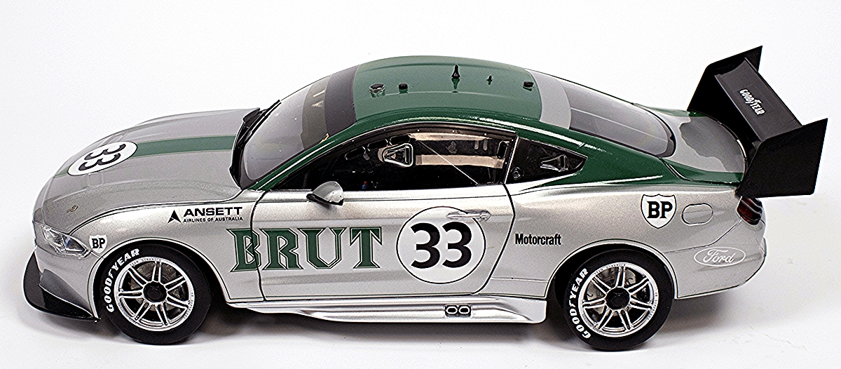 Originally built in the US by Kar Kraft, this Mustang was delivered to Australia for Moffat, becoming a dominant force on the track. After his famous Coca-Cola Mustang was ruled ineligible for the Australian Touring Car Championship, Moffat introduced the Brut 33 livery, making a bold statement in the Sports Sedan racing series against some of the greatest drivers and machines of the era.
