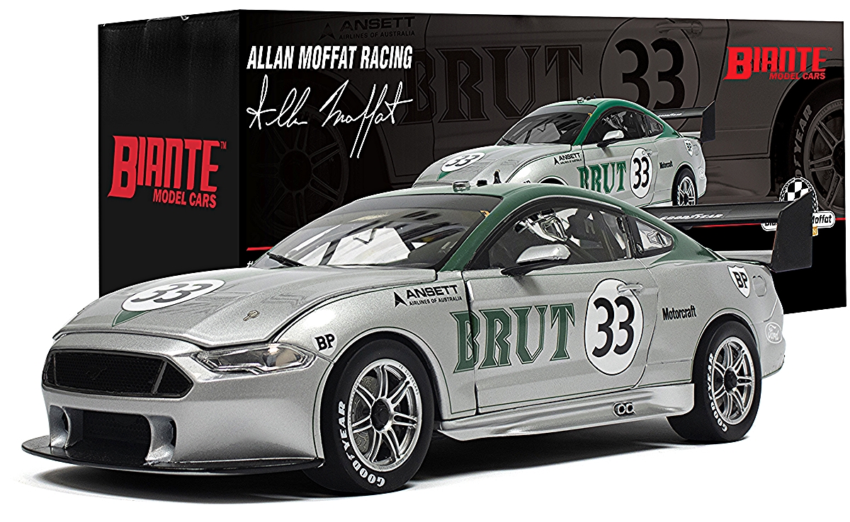 Celebrate a legendary chapter in Australian motorsport history with this highly detailed diecast model honouring Allan Moffat’s iconic Boss 302 Trans-Am Ford Mustang. A tribute to one of the most famous race cars in Australian motorsport, this model showcases the stunning Brut 33 silver and green livery as raced by Moffat in 1973.