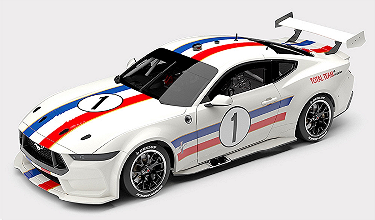 Based on an iconic Mustang, raced in a golden era of Australian motorsport, the simple #1 white red and blue livery has been replicated in-house by the Authentic Collectables research and development team to fit the new Gen3 S650 body Mustang. It fits perfectly, which isn’t surprising for a car as iconic as the Mustang, as it celebrates its 60th birthday in 2024.
