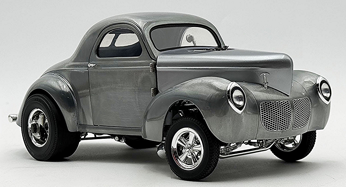 You’ve been asking for it for years, and now here it is!!! The Hammered Steel 1940 Gasser will be a centerpiece to your drag collection! This dynamic 1:18 1940 Gasser finished in beautiful hammered steel has fully opening features, detailed interior and under carriage, real rubber tires, and more!