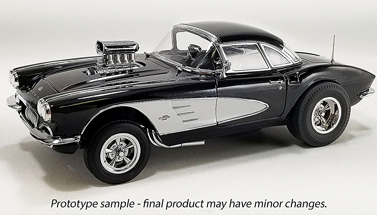 The Showtime 1961 Chevrolet Corvette Gasser will be the first Corvette gasser released with the all new rounded rear fender tooling! It will also feature custom headers, chromed out blown drag engine, chrome 5- spoke drag wheel & tires and much more!