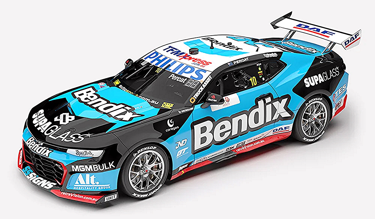 After a successful 2024, Bendix returns as Percat’s primary sponsor for the 2025 season. The vibrant Bendix blue, black and white colours featured in the livery make his No. 10 Chevrolet Camaro ZL1 Supercar one of the most eye-catching cars in the field.