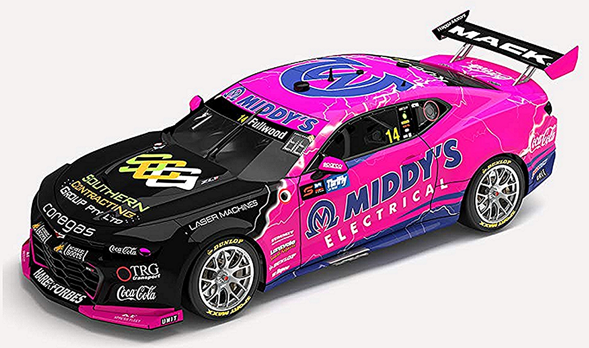 As the only Northern Territory-born driver in Supercars, Bryce Fullwood returns for his third season with BJR in 2024 to race the standout Middy’s Electrical backed #14 Chevrolet. The black and electric pink Camaro is unmissable on track and simply looks wild, with this model set to be replicated based on the season-opening Thrifty Bathurst 500 round.