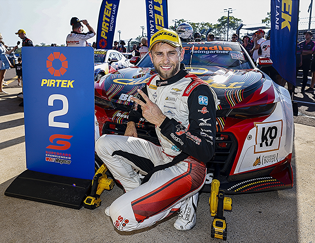 Brad Jones Racing’s Andre Heimgartner drove the #8 R&J Batteries Gen3 Camaro to second position, behind Jack Le Brocq. Le Brocq and Heimgartner made an even start from the front row, but the former had the inside line courtesy of his pole position. Heimgartner raced this super-stunner to a second-place position in a time of 40:42.0444 in 35 thrilling laps on the Hidden Valley Raceway – adding 92 points to his championship tally.