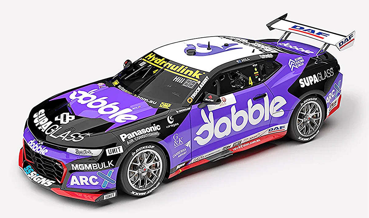 In 2025, Hill’s Supercars career took the next step at the Melbourne SuperSprint, held as part of the Australian Formula 1 Grand Prix round. He finished in the top 10 throughout the whole weekend, culminating in his first Supercars victory in Race 5. Hill, alongside teammate Nick Percat, secured a stunning 1-2 finish, marking a breakthrough moment in his career. This weekend also saw Dabble return as a major sponsor, with their striking purple and black colours proudly adorning Hill’s No. 4 Chevrolet Camaro ZL1, making it an incredible model for collectors.