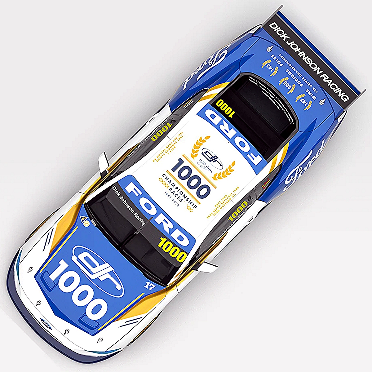 The model design also acknowledges the long standing relationship Dick Johnson Racing has with Ford, having raced a Ford product in every single one of their 1000 championship races.