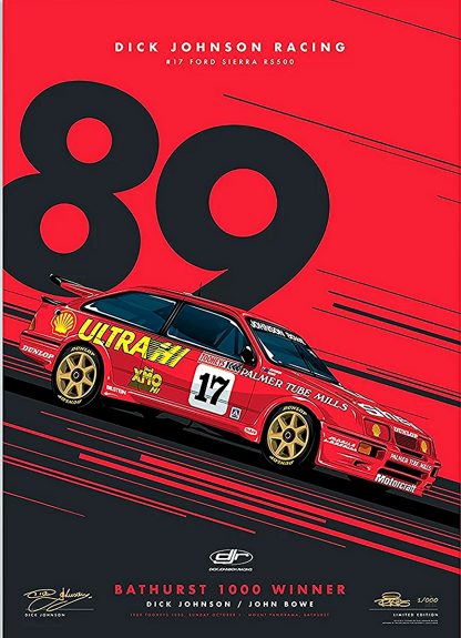 Dick Johnson Racing Ford Sierra RS500 1989 Bathurst 1000 Winner Red Limited Edition Signed Print
