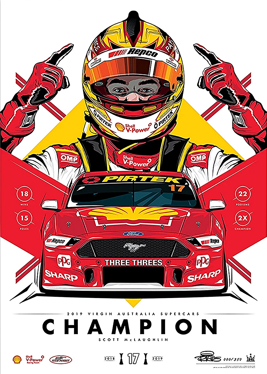 Shell V-Power Racing Team ‘Scott McLaughlin 2019 Champion’ Illustrated Print – Standard Edition Print