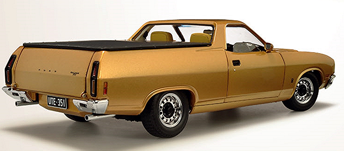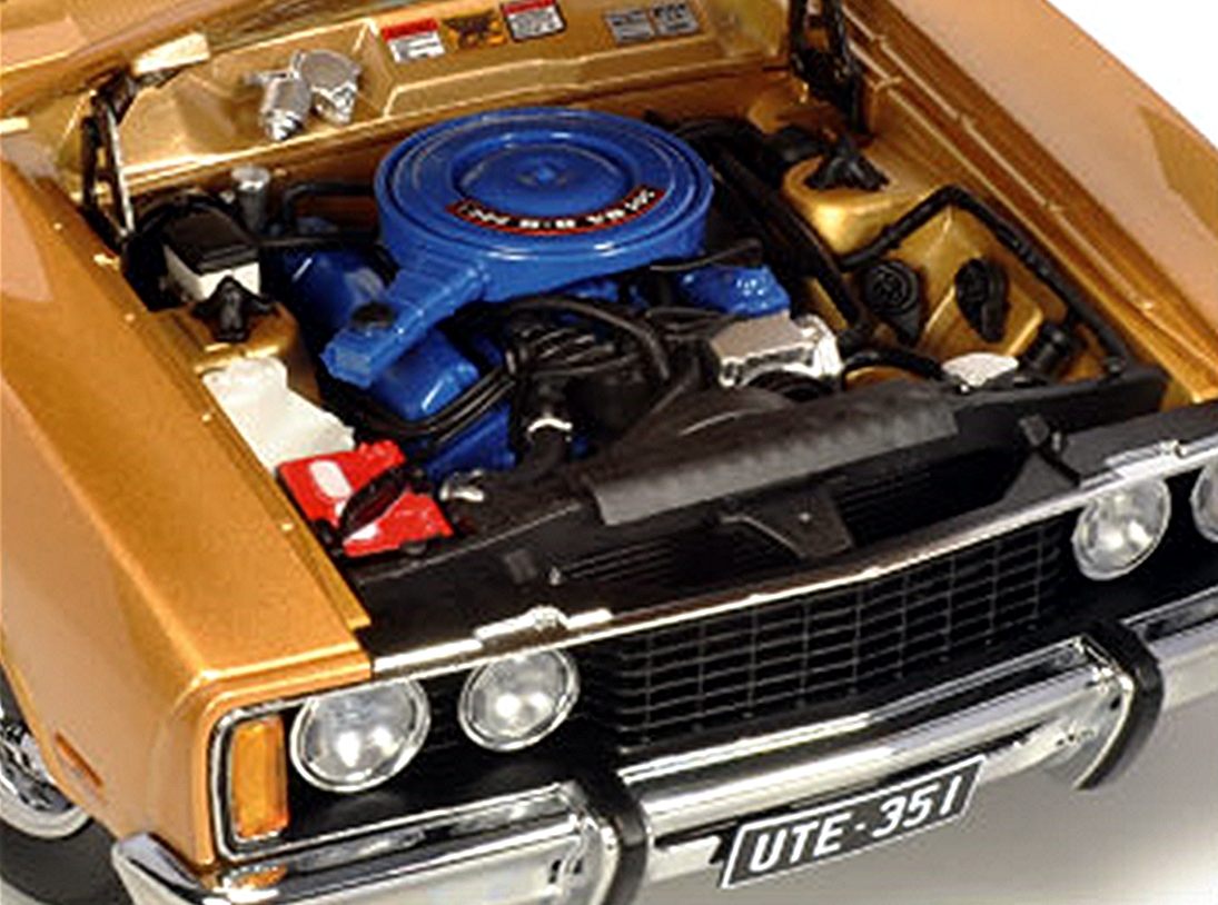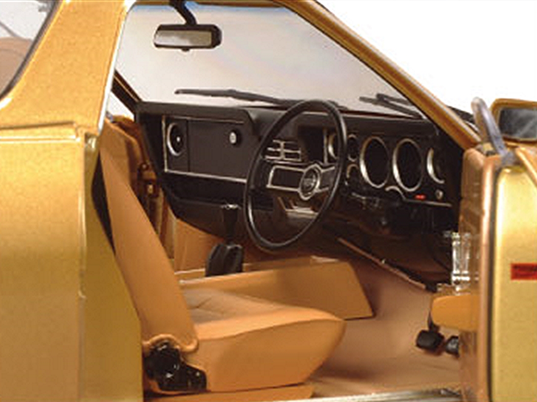 ‘NASA’ bonnet air scoops, sports wheels, bumper overriders, comprehensive dash and sports steering wheel. Our 1/18 Ford Falcon XC GS Utility also features the Cleveland V8 5.8 litre, paired with the 4-speed manual transmission.