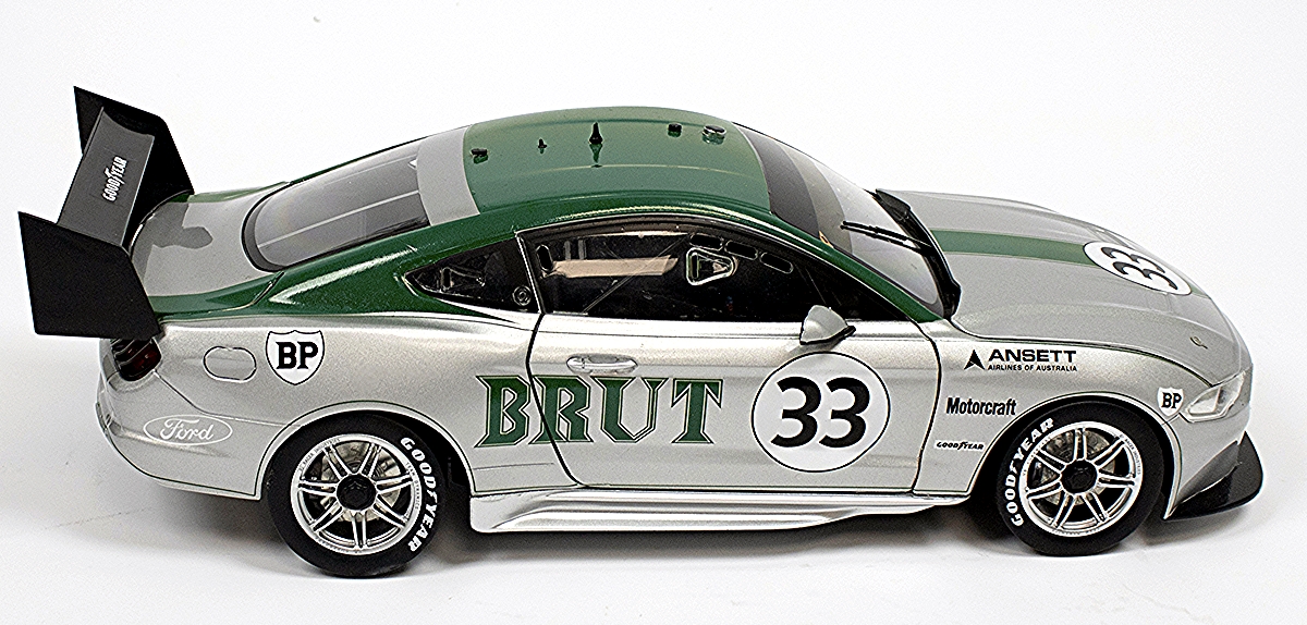 Originally built in the US by Kar Kraft, this Mustang was delivered to Australia for Moffat, becoming a dominant force on the track. After his famous Coca-Cola Mustang was ruled ineligible for the Australian Touring Car Championship, Moffat introduced the Brut 33 livery, making a bold statement in the Sports Sedan racing series against some of the greatest drivers and machines of the era.