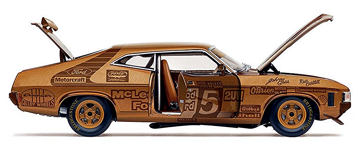 this special Gold Livery Edition of the Ford XA Falcon GT in celebration of the 50th Anniversary of the 1974 Bathurst victory, driven by John Gross and Kevin Bartlett.