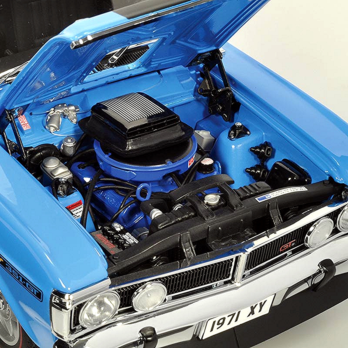 This GT-HO was a true supercar and with a top speed of over 140mph was the fastest four door sedan in the world at the time. Approximately 300 XY GT-HO Phase III Falcons were produced. This new XY had more subtle side striping than the XW, but it lacked none of the aggressive look people had come to expect. A functional, as well as decorative, air-cleaner assembly with a scoop protruding through a hole in the bonnet was standard. Ultimately this scoop assembly would become known as a “shaker”.