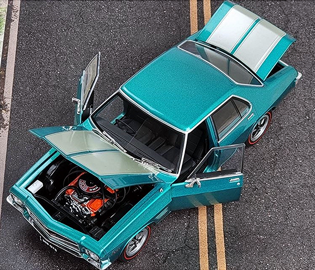 Holden HQ Kingswood 4 Door – Turquoise Metallic with White Stripes (bonnet & boot)