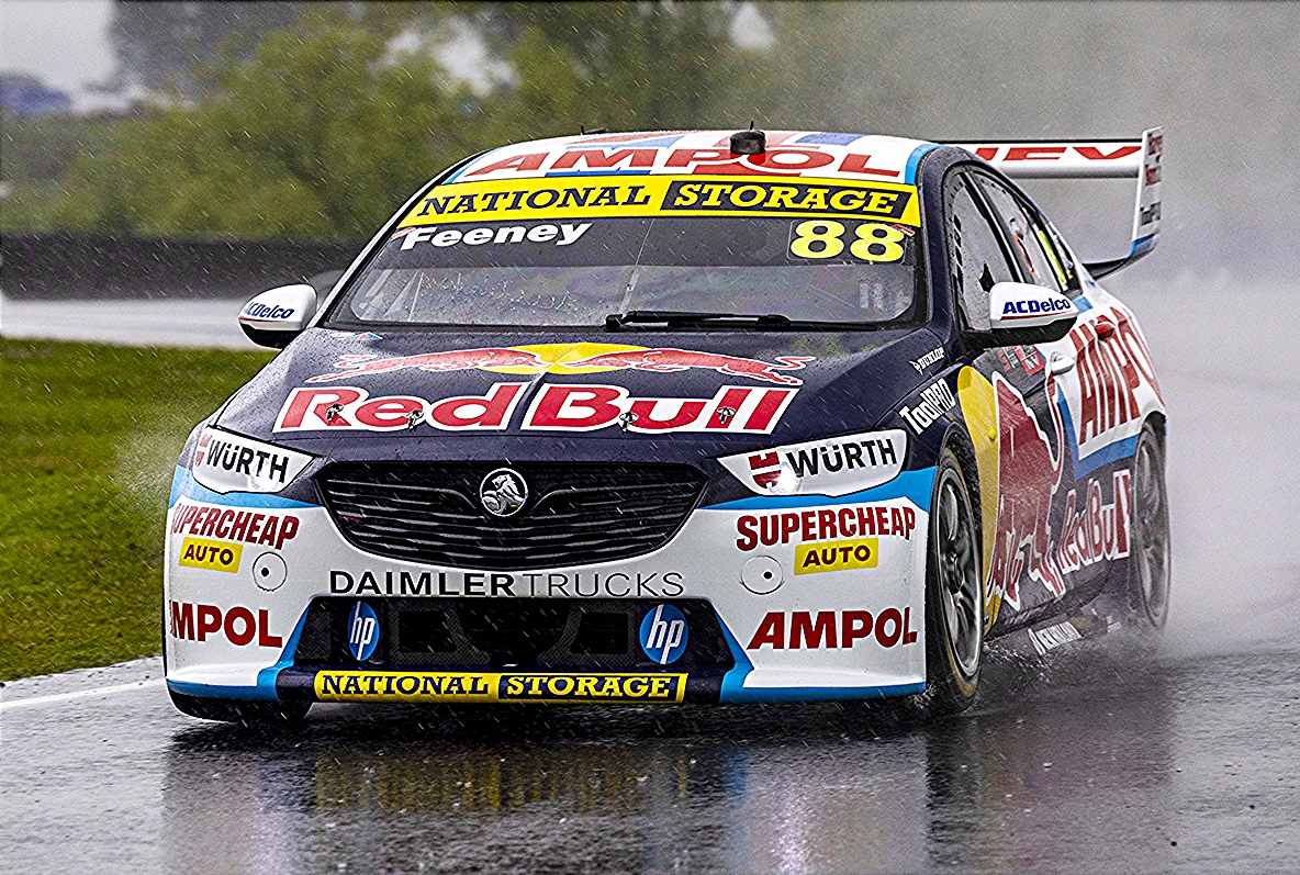 Heavy rain on Saturday led to the Top 10 Shootout to be cancelled, so grid positions were achieved from Friday’s qualifying times. With the rookie struggling in the wet conditions, 39-year-old Whincup took control in qualifying but would still have to start 14th on the grid. The #88 car got out of jail early with Whincup spinning on the wet track on Mountain Straight in the opening lap and also stopping while exiting the pit box. Feeney and Whincup worked themselves back to good position and were in the top 5 at the half-way point of the Great Race.