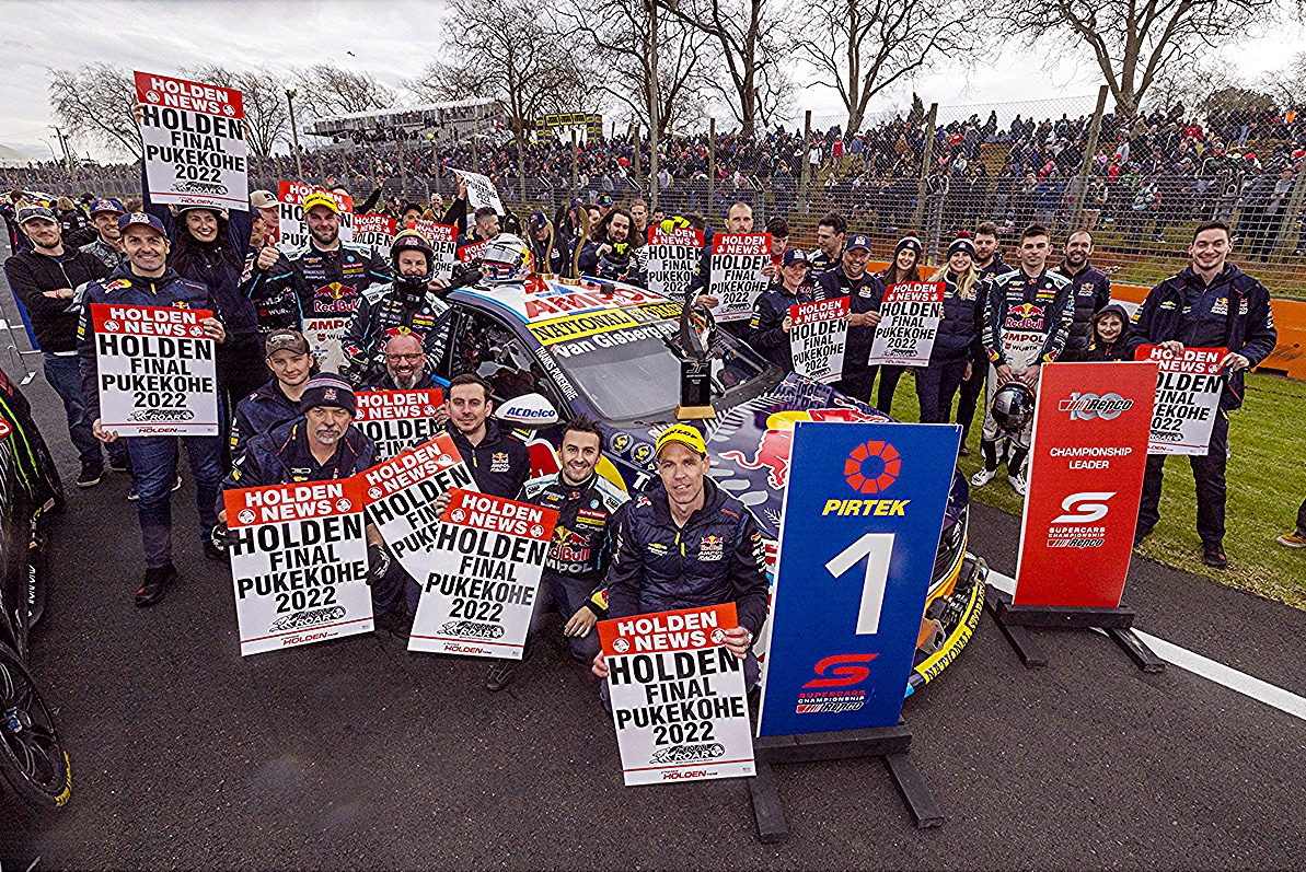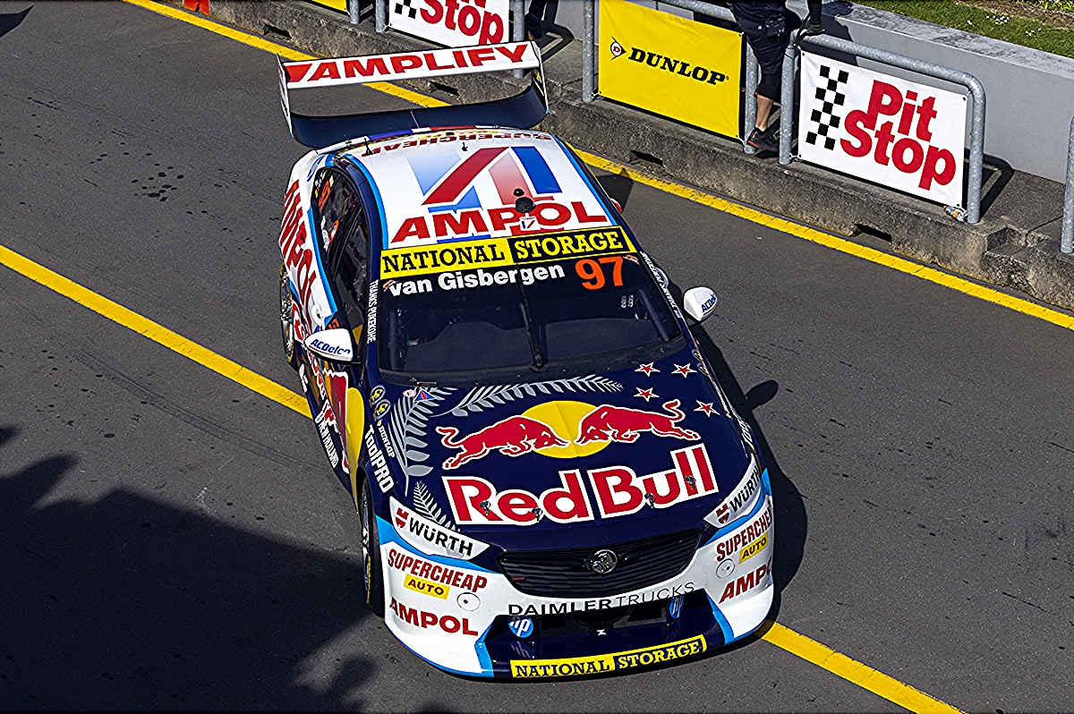 The Red Bull made a fitting tribute to the last race at Pukekohe with traditional New Zealand silver ferns and stars adorning the bonnet with “Thanks Pukekohe” on the front doors. Badges celebrating Van Gisbergen’s 2016 and 2021 Driver Champion titles have also been added to the sides of the bonnet.