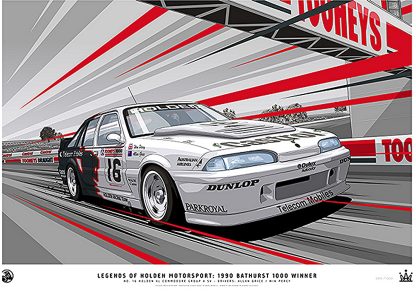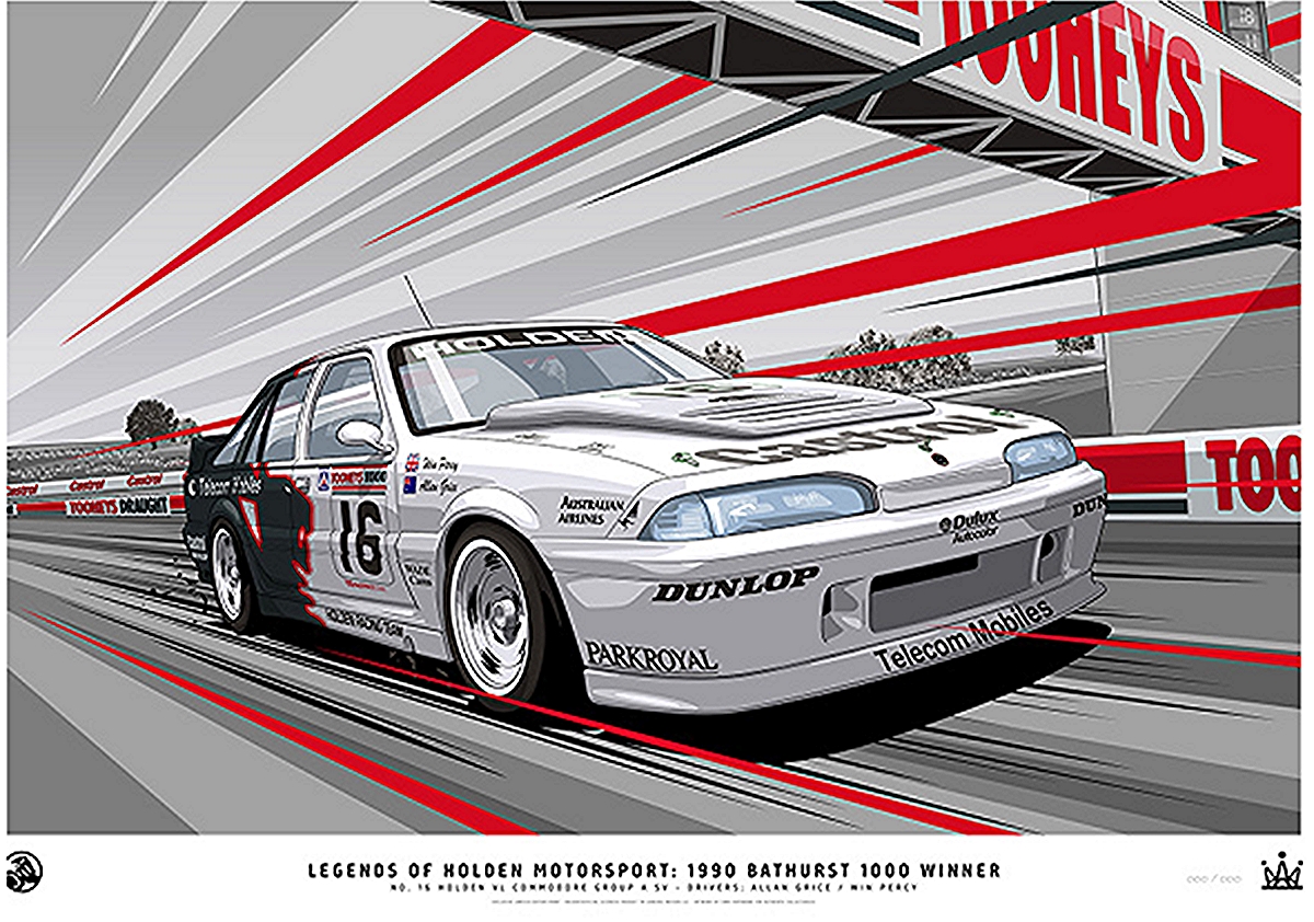 With that in mind, we’re very excited to be presenting this new limited edition print series celebrating the legends of Holden Motorsport. This edition features the iconic #16 HRT Holden VL Commodore Group A SV driven by Allan Grice and Win Percy to win the 1990 Bathurst 1000.