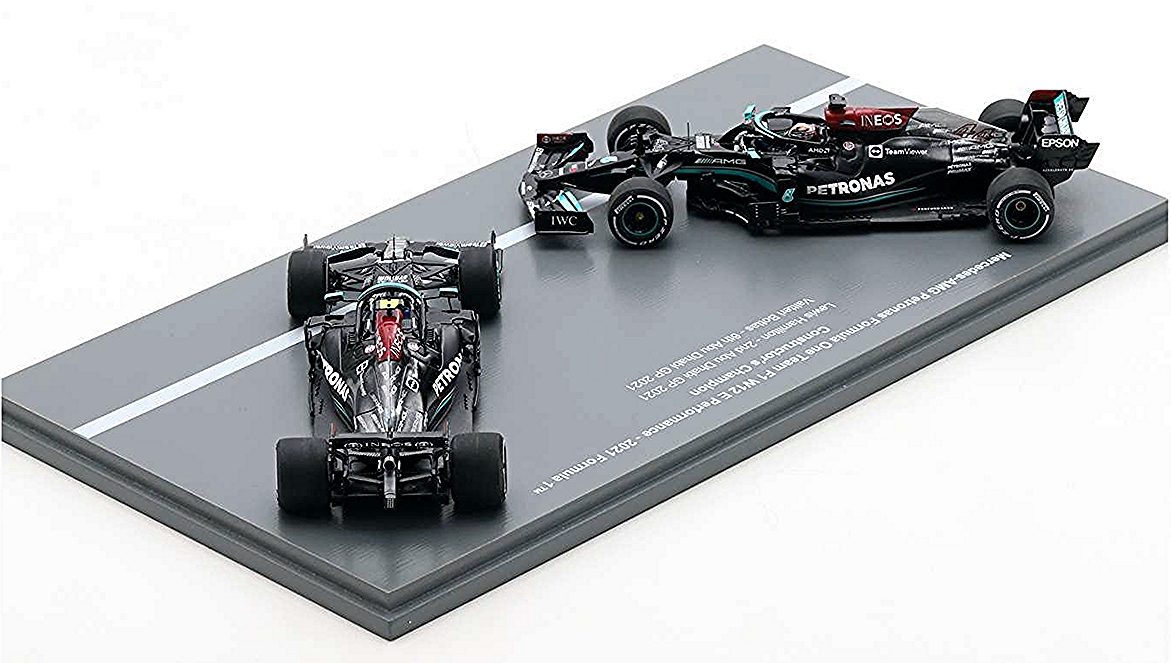 Mercedes-AMG Petronas Formula One Team No.44 + No.77 W12 E Performance – 2nd Abu Dhabi GP 2021 + 6th Abu Dhabi GP 2021 – Lewis Hamilton + Valtteri Bottas. Formula 1 Constructor’s Champion 2021. Twin set.