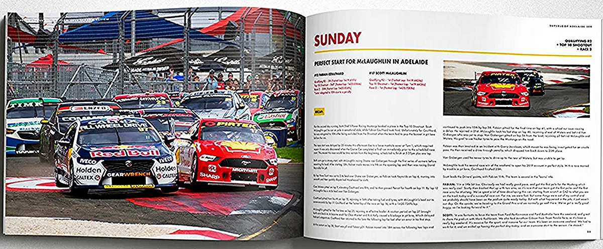 All of Scott McLaughlin and Fabian Coulthard’s 2019 poles and wins are included backed up with impressive imagery along with expanded sections dedicated to covering the big endurance races at Sandown, Bathurst, Gold Coast as well as the final championship winning Newcastle 500 round.