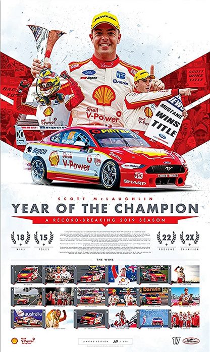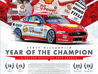 Limited edition print which celebrates Scott McLaughlin’s record breaking 2019 Championship season with Shell V-Power Racing Team.