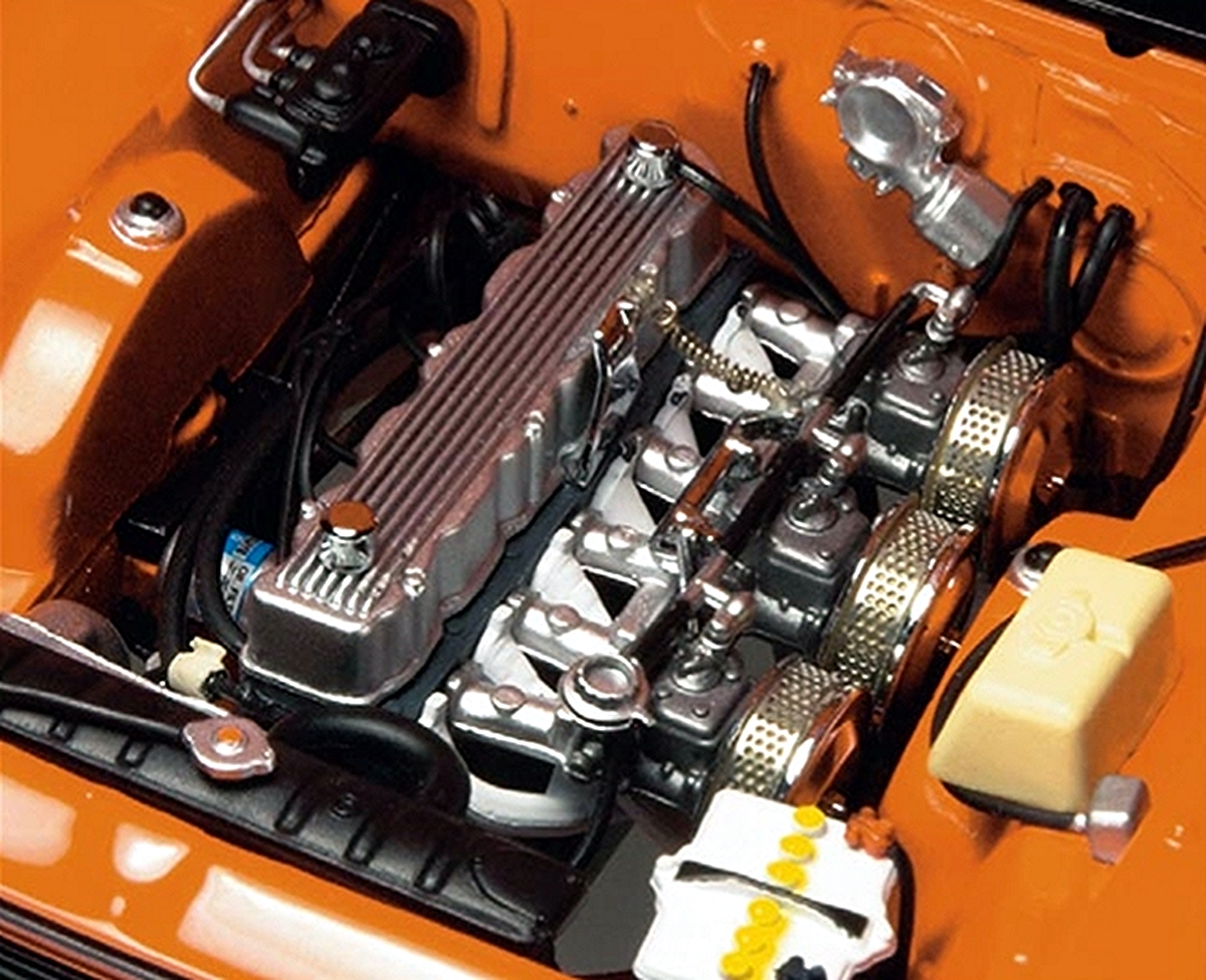 The six-cylinder Chrysler ‘Hemi’ engine was conceived in the US as a truck engine, before significant improvements were made prior to production in Australia. The E49 ‘six-pack’ engine has triple 45DCOE Weber carburettors, a special camshaft, valve springs and tuned length exhaust extractors. For durability, a special shot-peened crankshaft, conrods, competition pistons and rings, a baffled sump and twin plate heavy-duty clutch, completed the package. With its 265 cubic inch capacity, 10:1 compression ratio and 302 brake horsepower, it was an awesome engine.